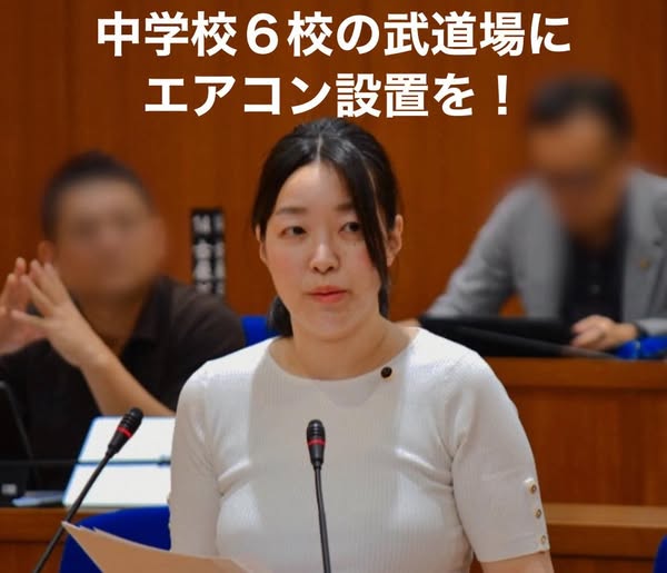 このような中、学校生活においても、熱中症対策は先延ばしできない最重要課題です。昨年12月議会では市内6校の武道場へのエアコン設置を要望し、今年度は試験的に2校で導入されました。ご尽力(じんりょく)いただきました市長や教育長、教育委員会や学校関係者の皆様には改めて感謝を申し上げます。