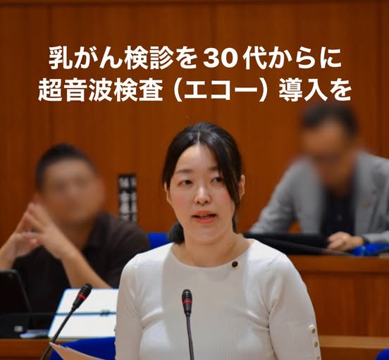 本市は若い女性や子育て世代が多く住む街であり、埼玉県内でも出生率ナンバーワン、平均年齢も最も若い市です。つまり、乳がんリスクが高まる30代女性が特に多い街だといえます。だからこそ、「30代から乳がん検診を実施してほしい」「マンモグラフィーだけでなくエコー検査も導入してほしい」という声が市民から繰り返し寄せられてきました。