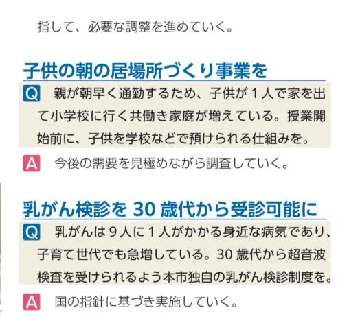 乳がんは9人に1人がかかる病気であり、若年層の患者も増加しています。そこで、30歳代から超音波検査(エコー)を受けられるよう提案しました。それに対して戸田市の答弁では、「国の方針に基づく」との消極的な答弁でした。しかしながら、昔のままの制度では、今の時代のニーズに合っていません。若い女性を乳がんから守るためにも、戸田市独自の検診制度の充実をはかっていただけるよう、引き続き戸田市に要望していきたいと思います。
