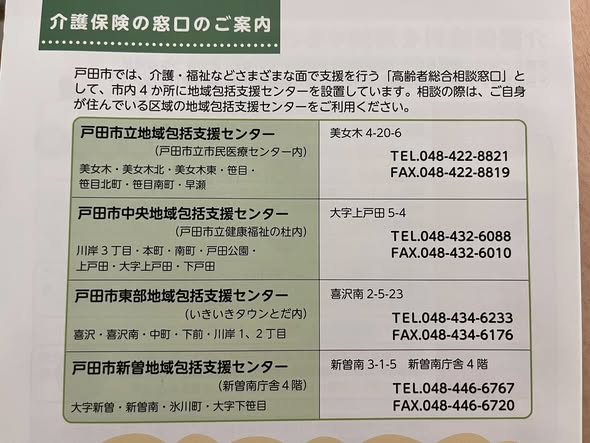 • 戸田市立地域包括支援センター(美女木4-20-6)TEL:048-422-8821