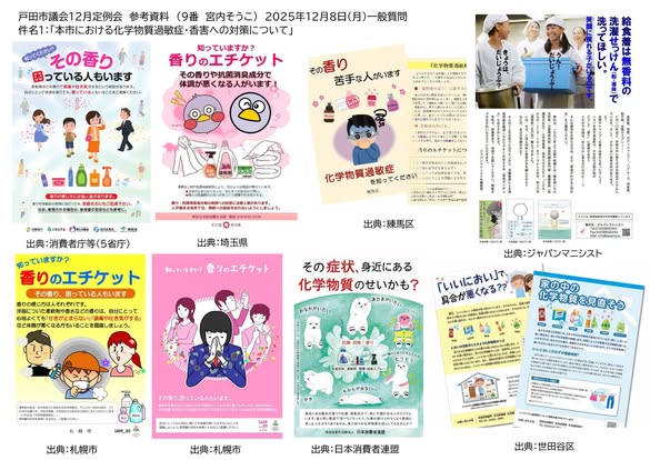 市からは、啓発ポスターの活用や、学校・保育園・学童での換気の徹底、「子どもがいる環境での洗剤や消臭剤の利用では、なるべく無香料、低刺激の物を選定する」など、前向きなご答弁もありました。