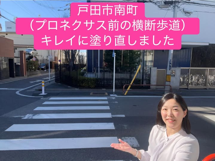 先日、私の住む戸田市南町の町会パトロール隊の皆さんからご要望をいただいていた件で、プロネクサス前の横断歩道をきれいに塗り直していただきました。