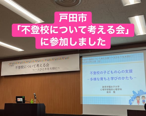 こんにちは今日は冷たい雨ですね本日は、戸田市教育委員会が主催する「不登校について考える会」というイベントに参加しました。私自身、2人の子どもを育てる中で、もしも子どもが「学校に行きたくない」と言い出したら、自分は親としてどうするだろう…?と、いつも心の片隅で考