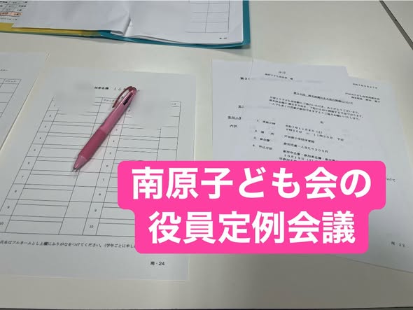 こんにちは本日は朝からお昼過ぎまで、南原子ども会の役員定例会議を開催いたしました。現在、南原子ども会では私も含めて5人のお母さんたちが役員の中心となって、地域の子どもたちのために日々活動してくださっています。南原子ども会は、所属する子ども達の人数もかなり多