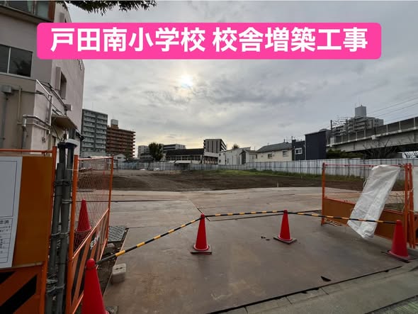 戸田南小学校のおはなしランドと戸田南小学校の増築工事の進捗状況